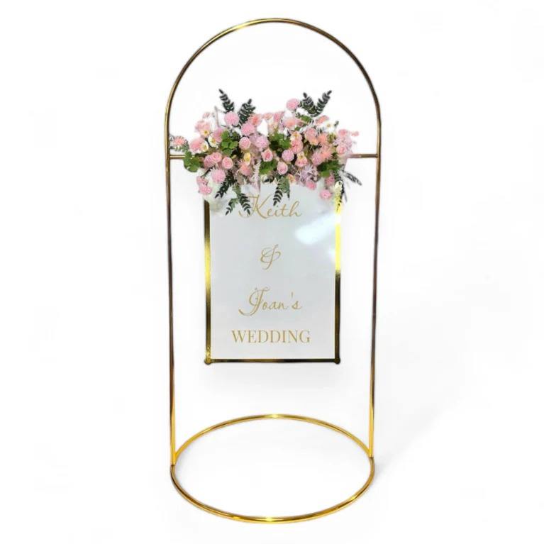 แท่นวางโลหะสีทองสำหรับงานแต่งงานกลางแจ้งและงานปาร์ตี้