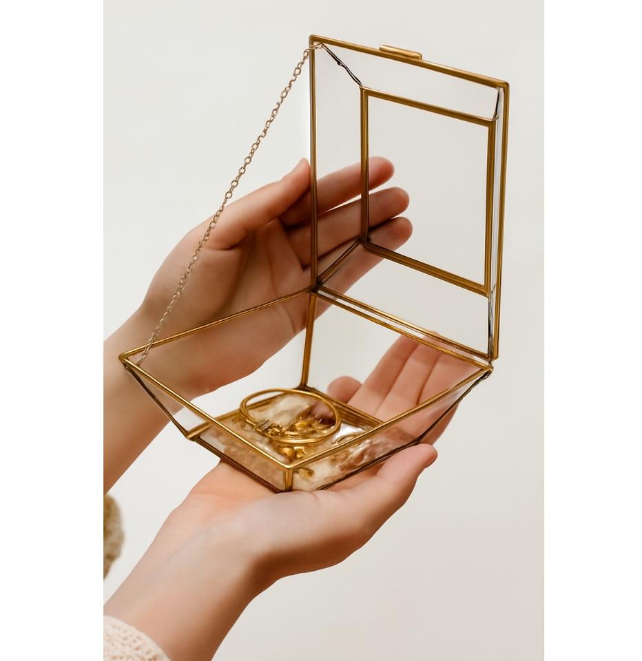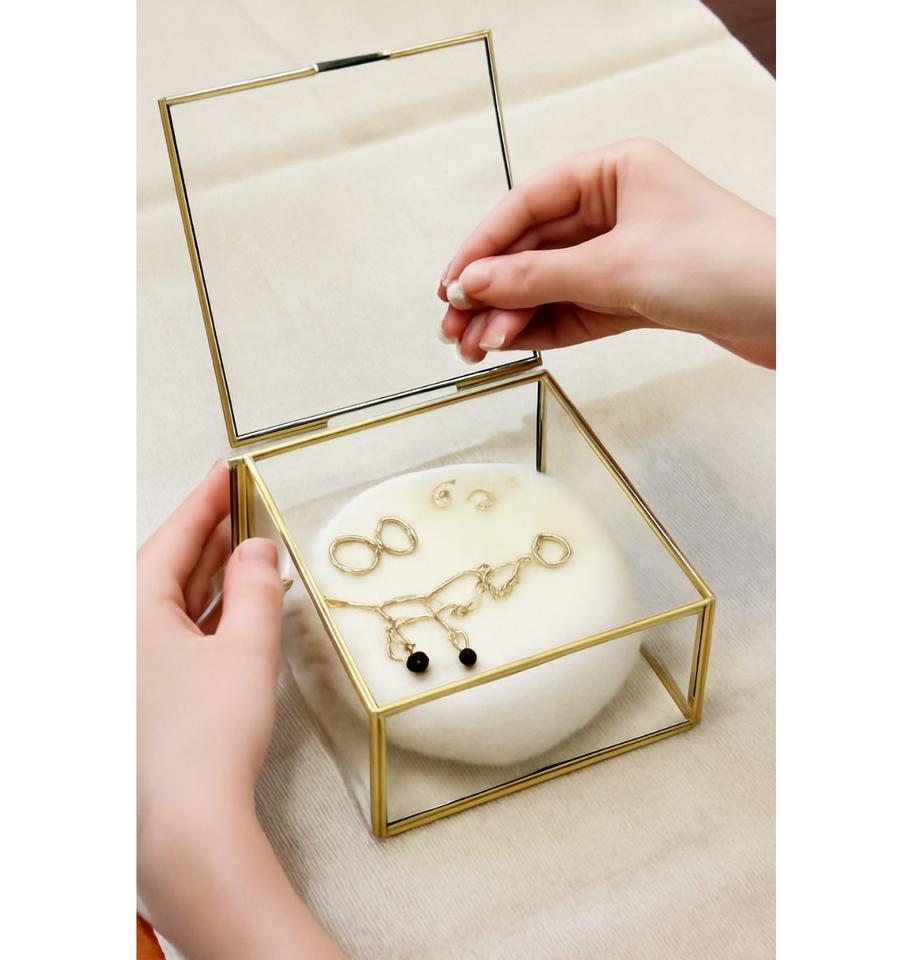 กล่องเครื่องประดับแก้วสีทองคุณภาพสูงประกอบไปด้วยเครื่องแก้วไร้ที่ติเพื่อความสวยงามและคุณค่าในการใช้งาน