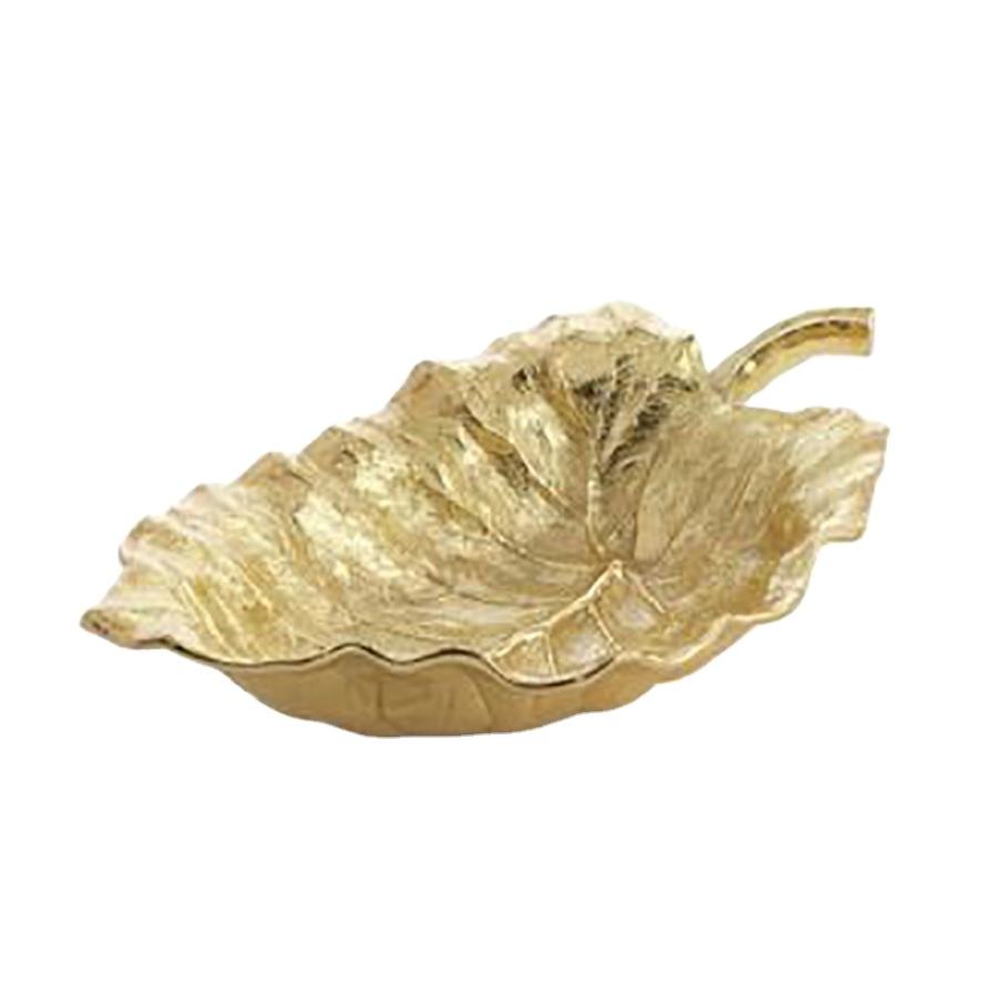ถาดชามผลไม้ดีไซน์ลายใบไม้สีทองเป็นมิตรกับสิ่งแวดล้อมทันสมัยสำหรับใช้ในบ้านโรงแรมของว่างถาดชาม