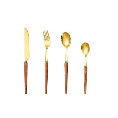 ตะเกียบกระจกสีทองด้ามไม้ขัดเงาชุดมีดทำครัวหรูหรามีด้ามจับปลายแหลมขายส่ง