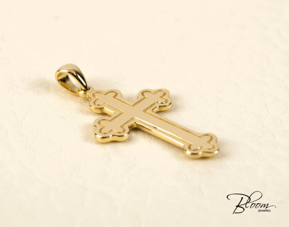 จี้ไม้กางเขนชุบทองคุณภาพสูงเครื่องประดับขัดเงาคุณภาพสูงสำหรับผู้ชายผู้หญิงโรงงานสัญลักษณ์ทางศาสนาของนิกายออร์โธดอกซ์
