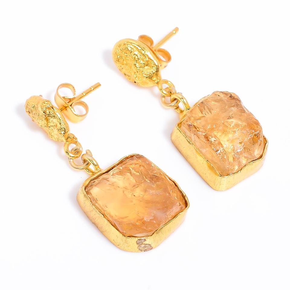 ต่างหูชุบทองคุณภาพสูงต่างหูชุบทอง2.5ไมครอนเครื่องประดับทองเหลืองอัญมณีควอตซ์สีกุหลาบเครื่องประดับโบราณ