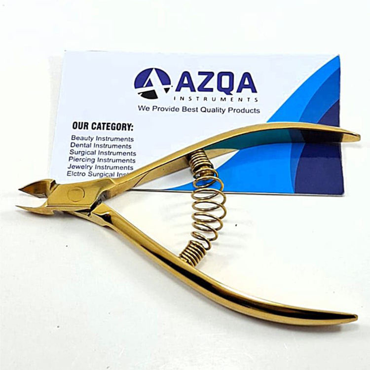 ที่ตัดหนังกำพร้าสปริงชุบทองคุณภาพสูง ทำจากสแตนเลส สำหรับดูแลเล็บมือและเล็บเท้า พร้อมใบมีดโค้ง