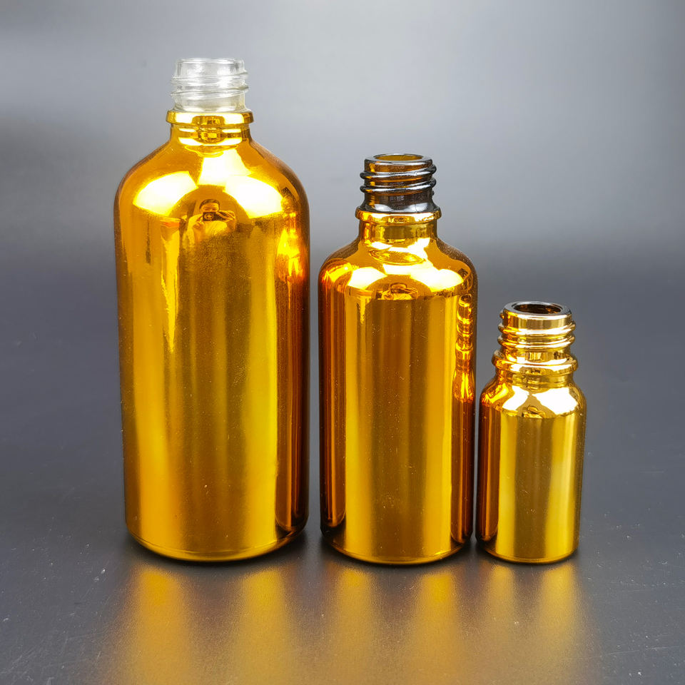ขวดน้ำมันหอมระเหยเคลือบทองคุณภาพสูง ขนาด 5 มล. ถึง 100 มล. พร้อมจุกหยด บรรจุในกล่อง เหมาะสำหรับใช้เป็นยาหยอดตา