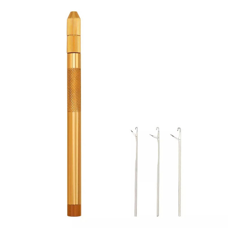 เข็มถักโครเชต์สำหรับการต่อผมขนาดเล็กเข็มตะขอสแตนเลสสตีลสีทอง