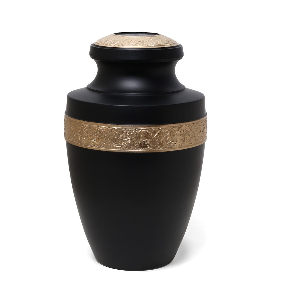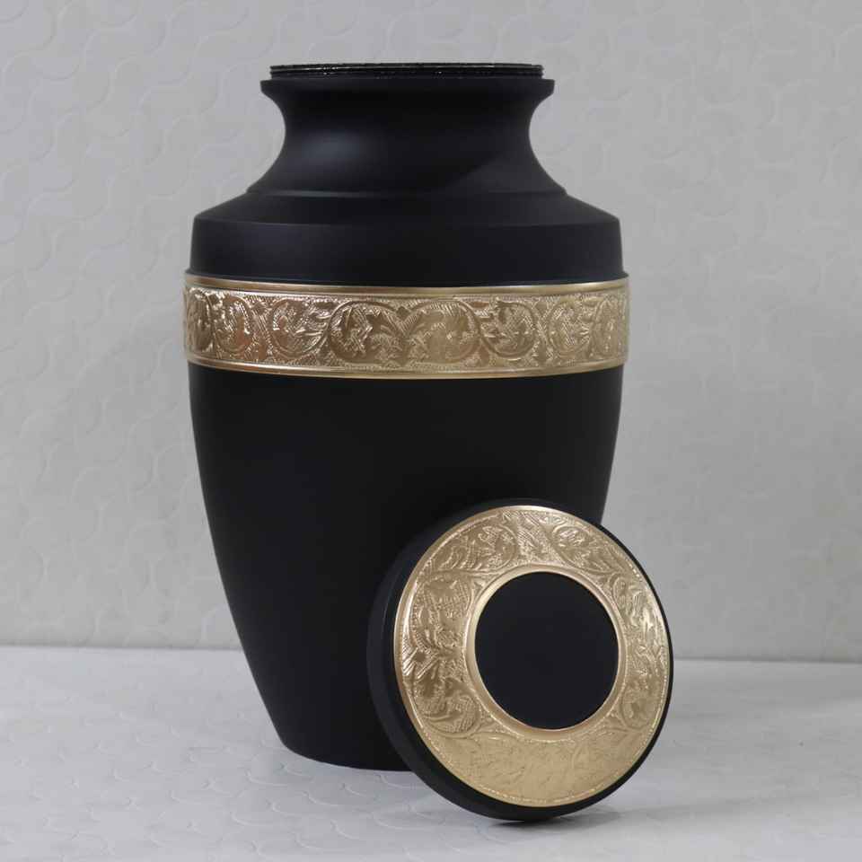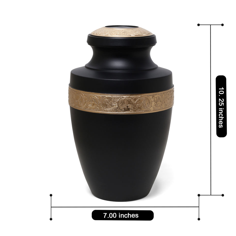 โกศบรรจุอัฐิสัตว์เลี้ยงและมนุษย์คุณภาพสูง สีดำ ลายสลักทอง ขนาดสำหรับผู้ใหญ่ ย่อยสลายได้ เป็นมิตรกับสิ่งแวดล้อม ความจุ 200 คิวบิกอินเชนส์
