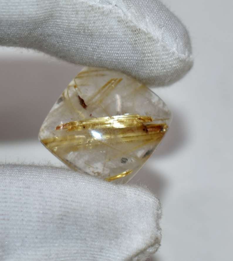 คุณภาพสูงทอง Rutile รูปทรงสี่เหลี่ยม Cabochon พร้อมเข็มรวมของแท้ Rutilated ควอตซ์อัญมณีสําหรับเครื่องประดับ DIY ทํา