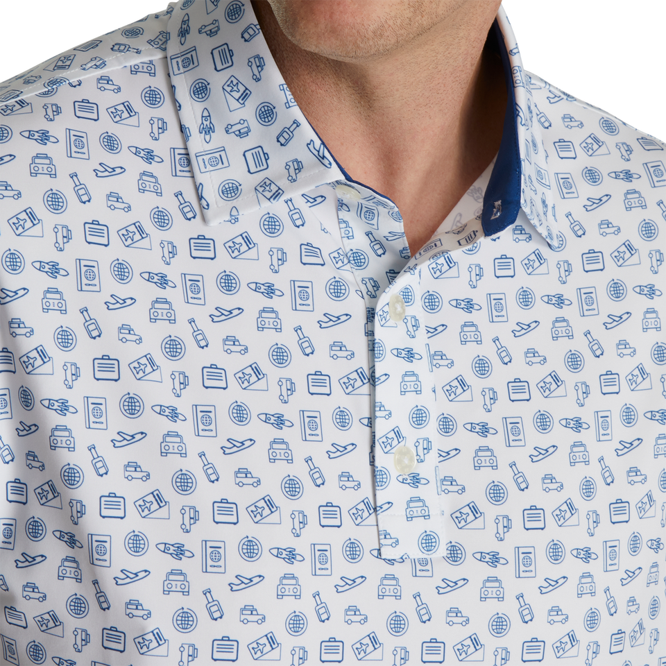 เสื้อเชิ้ตแขนสั้นกอล์ฟคุณภาพสูงพิมพ์ลายระบายอากาศเสื้อโปโลกอล์ฟสีดําและสีขาวสําหรับผู้ชาย
