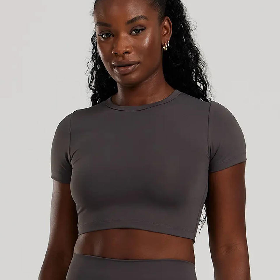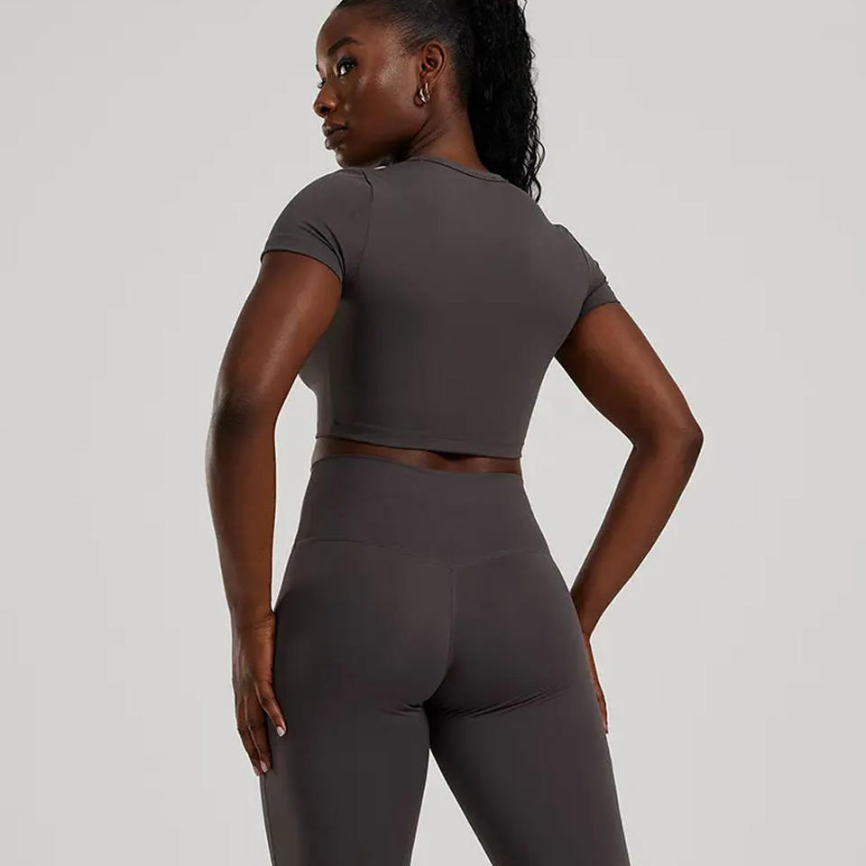 เสื้อครอปแขนสั้นสำหรับผู้หญิงเสื้อครอปสำหรับออกกำลังกายฟิตเนสแขนสั้น