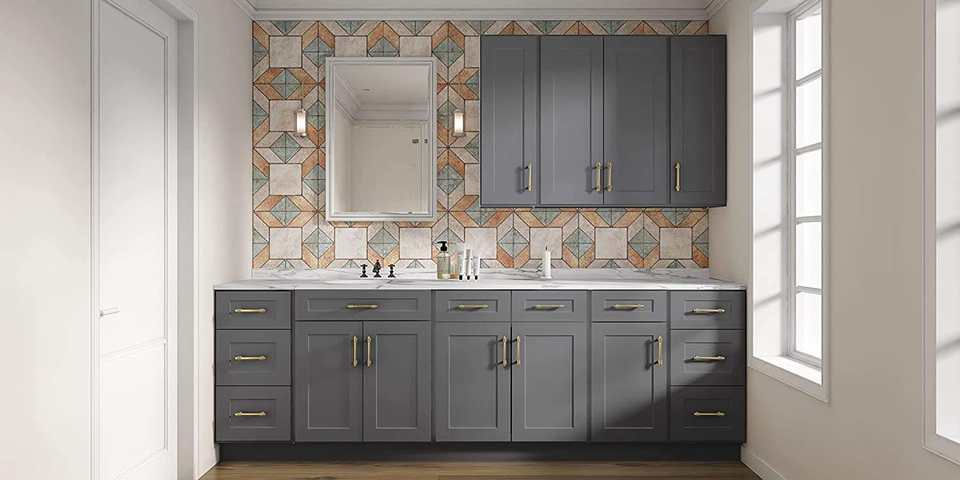ชุดตู้ครัวไม้เนื้อแข็งสไตล์เขย่าสีเทาผลิตจากโรงงานในเวียดนามพร้อมประกอบดีไซน์จากสหรัฐอเมริกา