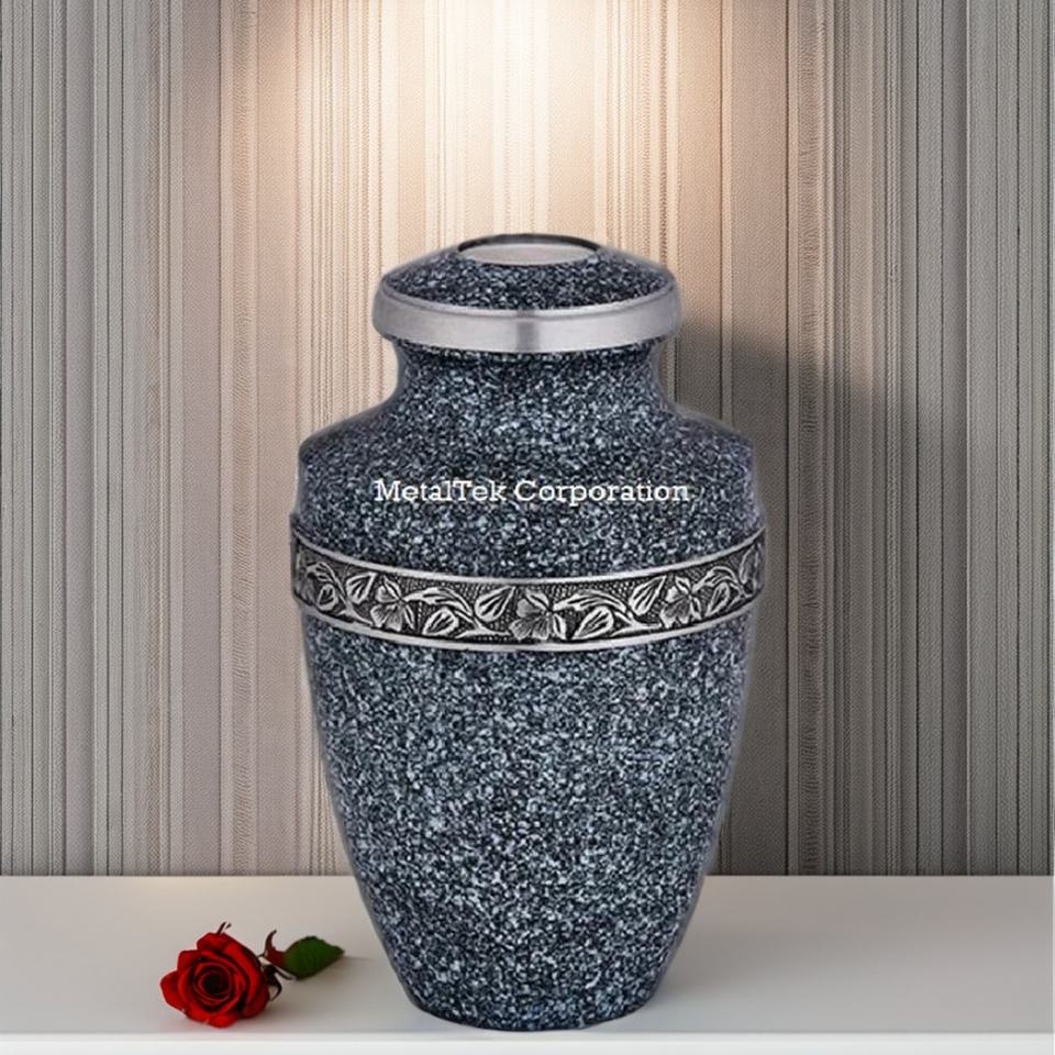 โกศโลหะอะลูมิเนียมสองคอร์นสำหรับงานศพผู้ใหญ่พร้อมแหวนแกะสลักโกศ