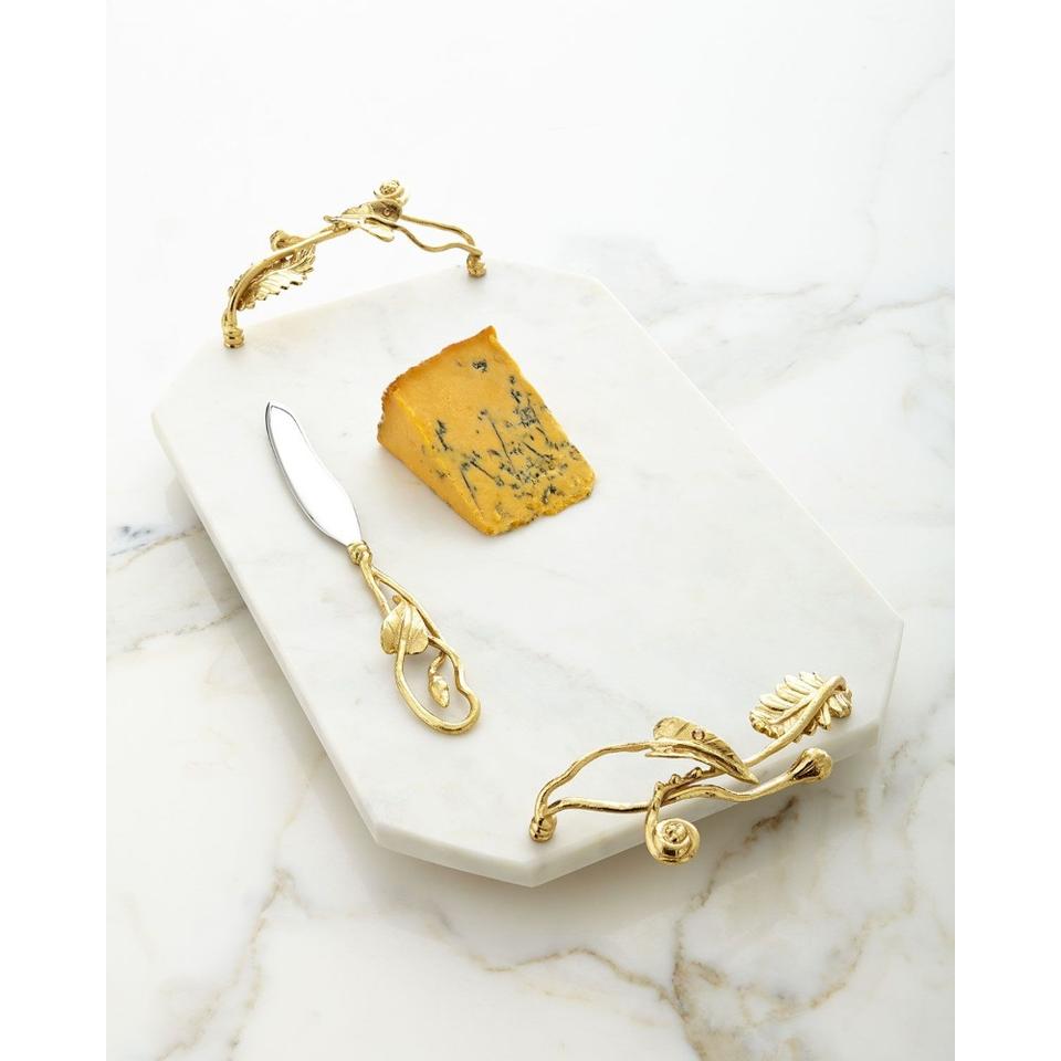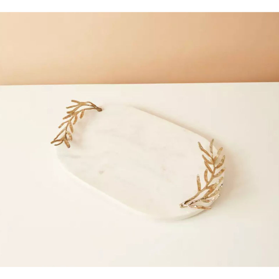 ถาดเสิร์ฟหินอ่อนธรรมชาติสีเขียวพร้อมที่จับสำหรับตกแต่งบ้านและงานแต่งงานดีไซน์ใบไม้
