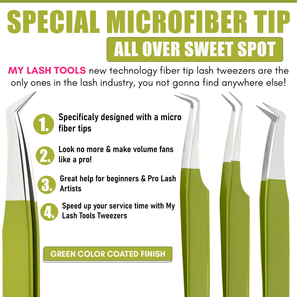 แหนบขนตาแบบยึดจับแนวระนาบสีเขียวแยกฉลากส่วนตัวแหนบปลายขนตาปลอมทำจากเส้นใยสแตนเลส
