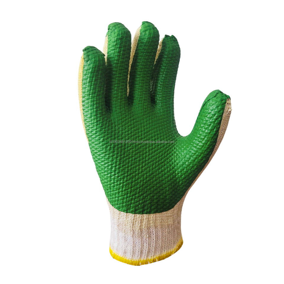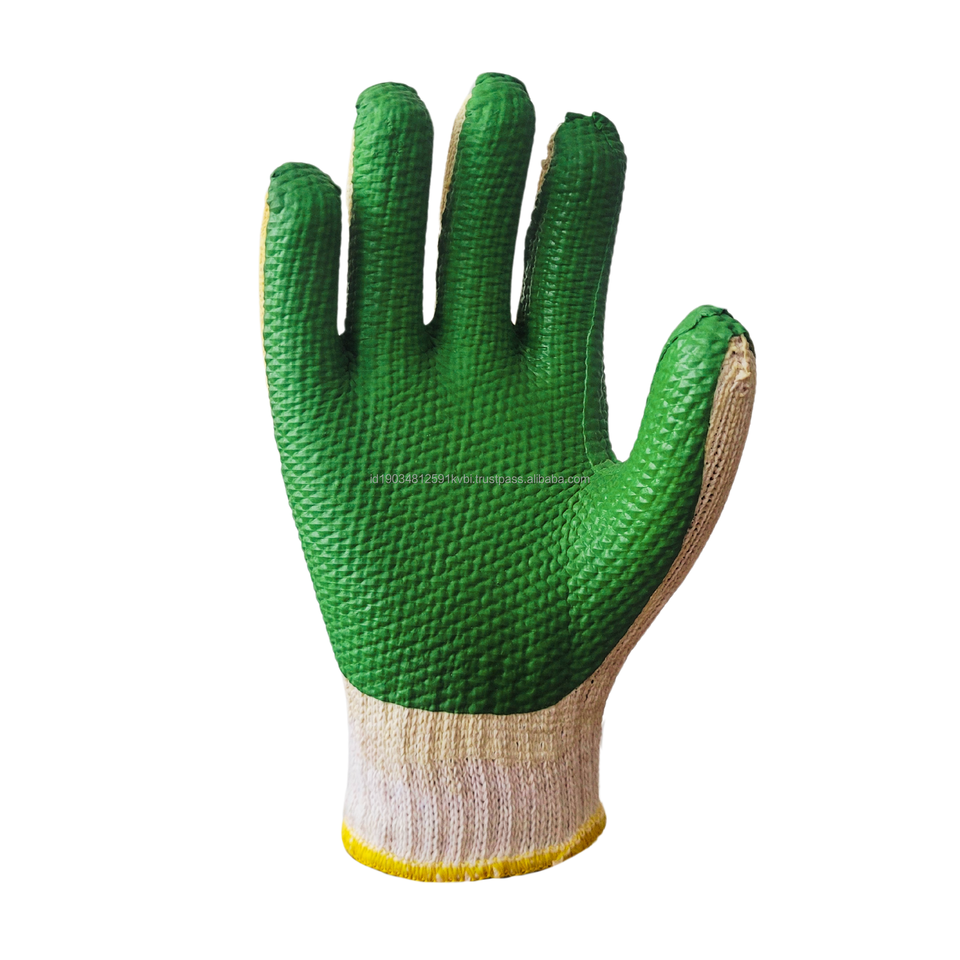 ถุงมือยางปาล์มสีเขียวเพื่อเพิ่มความปลอดภัยและการยึดเกาะในสภาพแวดล้อมการทำงานทั่วไปที่ใช้งานหนัก