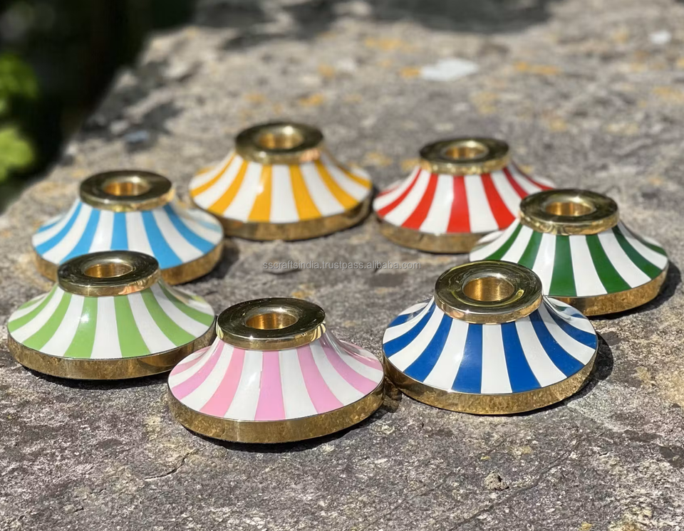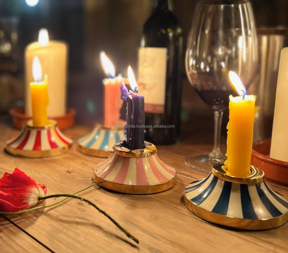 เชิงเทียนเรซิ่นคุณภาพสูง สีเขียวขาว สไตล์บ้านไร่หรูหรา ผลิตด้วยมืออย่างยั่งยืน สำหรับตกแต่งบ้าน คอลเลคชั่นใหม่จากอินเดีย