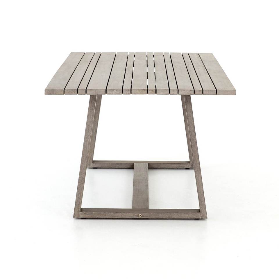 โต๊ะรับประทานอาหารไม้สักสีเทาทนทานเฟอร์นิเจอร์กลางแจ้งทันสมัยทนทานสำหรับบ้านไร่สวนโรงแรมชายหาดวิลล่าสวนสาธารณะ