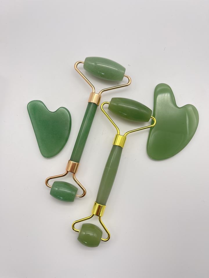 เครื่องนวดหน้ากัวซาโรลเลอร์แบบตรงสีเขียวพร้อมกล่องสุดหรูมีโลโก้ตามสั่ง