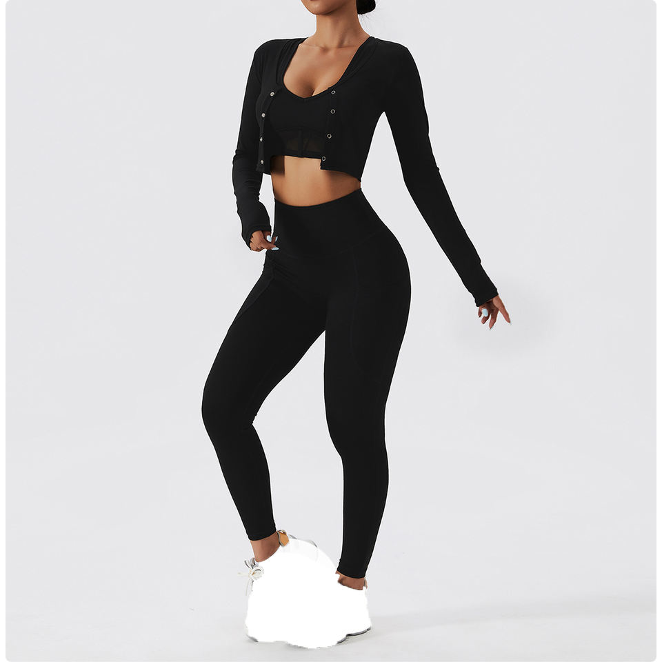 ชุดออกกำลังกายแบบไร้ตะเข็บสำหรับผู้หญิงชุดบราเลกกิ้งเอวสูงชุดออกกำลังกายแบบไร้ตะเข็บระบายอากาศได้ชุดโยคะสามชิ้นสำหรับเล่นกีฬา