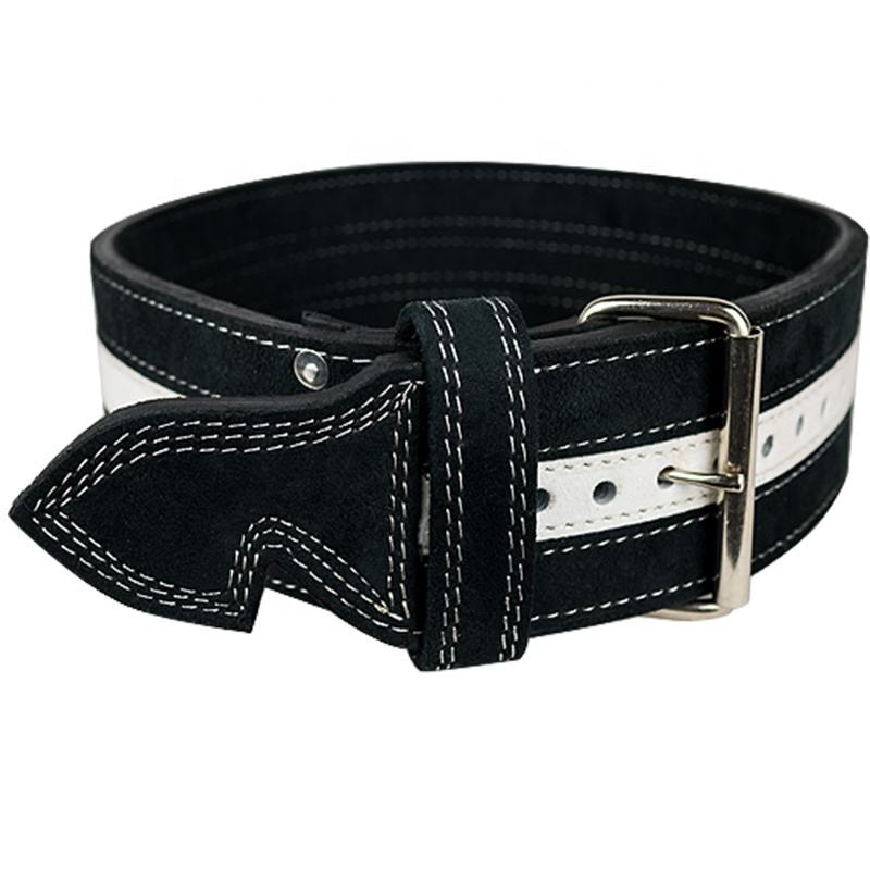 เข็มขัดหนังยกน้ำหนักสำหรับยิมเข็มขัดออกกำลังกายหนังแบบปรับแต่งได้สำหรับทุกเพศ10มม. แบบสองง่ามเข็มขัดยกไฟ