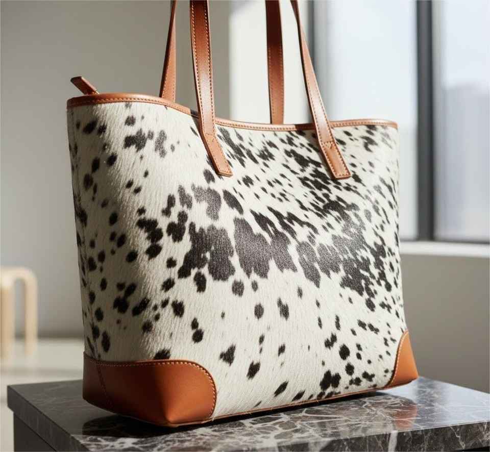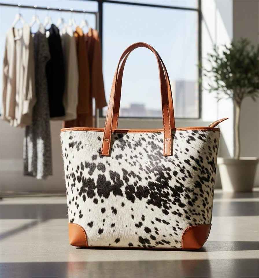 Genuine Leather Hair On Tote Bag