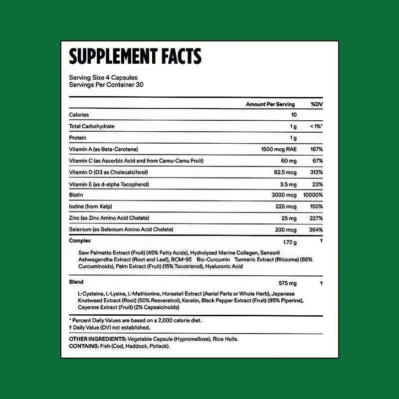 แคปซูลอาหารเสริมบำรุงเส้นผมคุณภาพสูง ช่วยเร่งการเจริญเติบโตของเส้นผมและเพิ่มความหนาให้เส้นผมสำหรับผู้ชาย