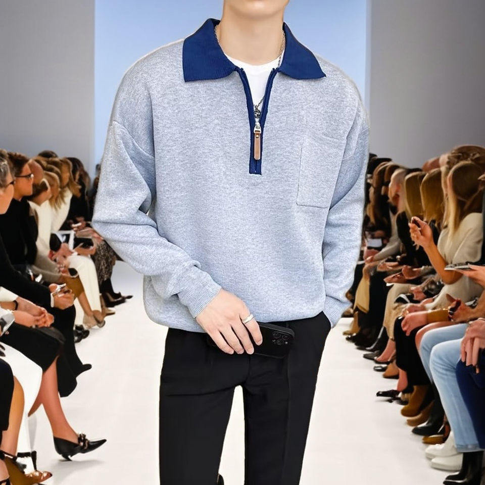 สเวตเตอร์คอโปโลแบบเปิดลงมีซิปครึ่งคอเสื้อสเวตเตอร์สำหรับผู้ชายใส่ในฤดูใบไม้ร่วง