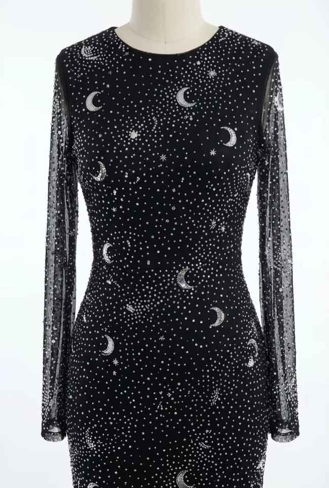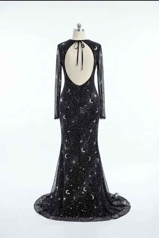 ชุดราตรียาวแขนยาวประดับลูกปัดคุณภาพสูง งานปักมือ หรูหรา เหมาะสำหรับงานเลี้ยงและงานพิธีการ ราคาโรงงาน