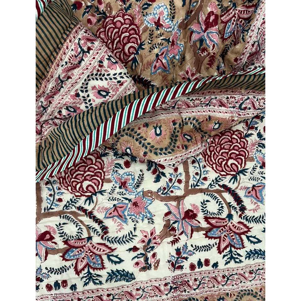 High Quality Hand Block Printed Cotton Single Quilt Handmade Kantha Bedspread for Home Floral Patchwork Design for Summer Winter