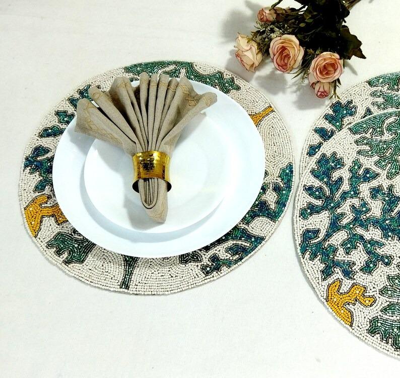 High Quality Hand Embroidered Beaded Placemat Home Decor Leaf Shape Custom Color Modern Wedding Christmas Decoration Bulk Price