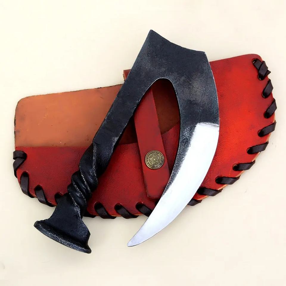 มีดเหล็กกล้าคาร์บอนสูงคุณภาพสูง ตีขึ้นรูปด้วยมือ สไตล์โบราณยุคกลาง ด้ามจับเต็มด้าม พร้อมปลอกหนัง