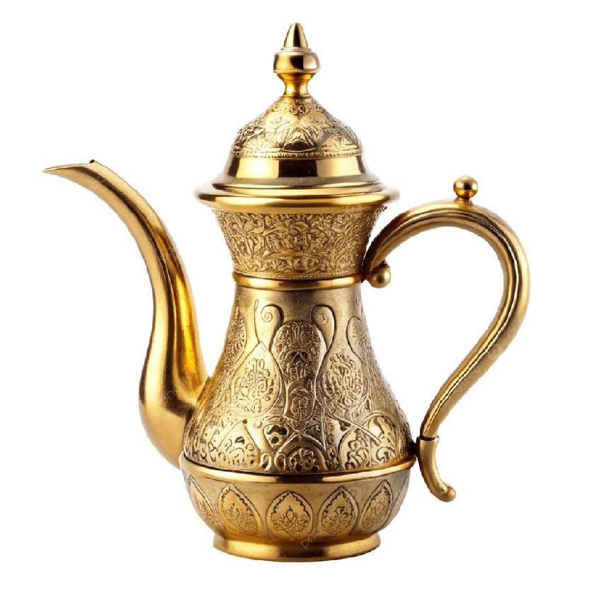 หม้อกาแฟ Dallah ทำด้วยมือทำจากทองเหลืองพร้อมสลักและขัดเงาสำหรับภาชนะหม้อกาแฟอาหรับ