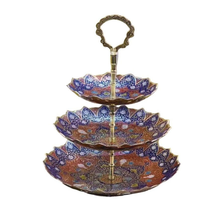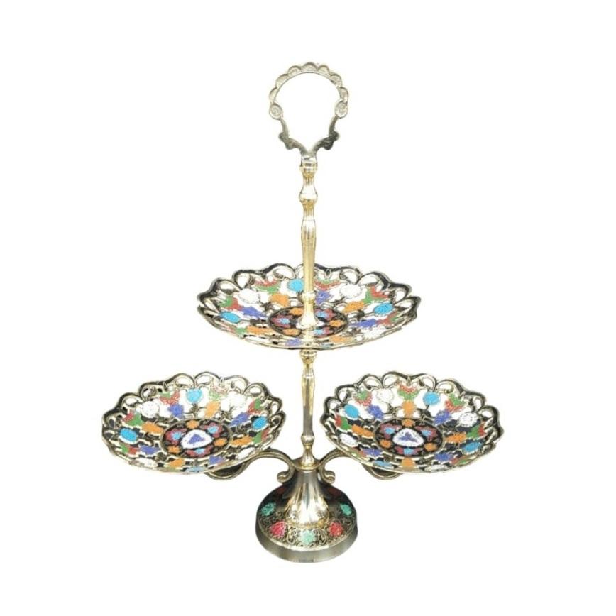 ชามผลไม้ทำจากทองเหลืองสามชั้นคุณภาพสูงแกะสลักสวยงามหลากสีและขัดเงาสำหรับใช้ในครัว