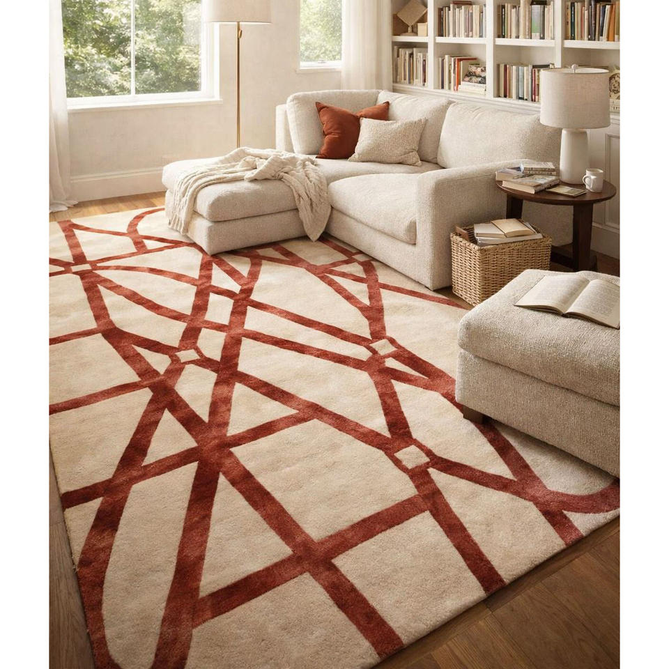 พรมปูพื้นห้องนั่งเล่นคุณภาพสูง ทอมือ ขนาดใหญ่ ทำด้วยมือ