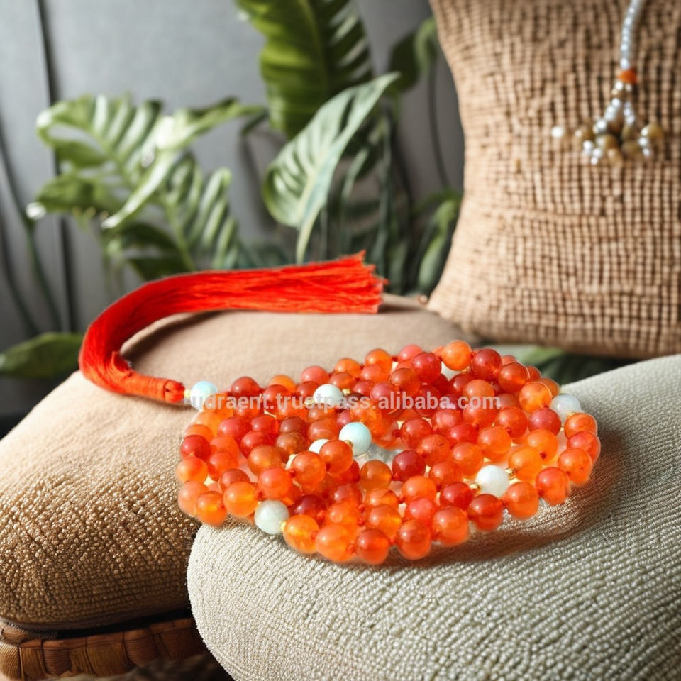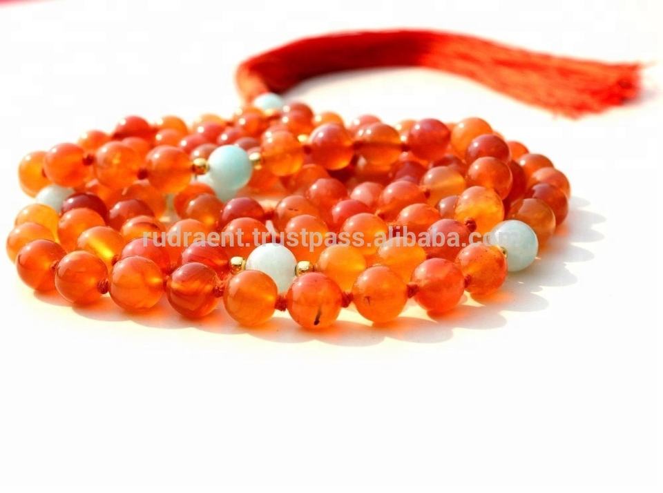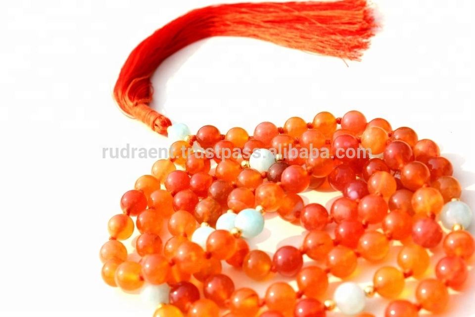 ลูกประคำคาร์เนเลียนอะความารีนคุณภาพสูง ขนาด 6 มม. 108 เม็ด สร้อยคอแบบมาลา 28 นิ้ว สำหรับผู้ชายและผู้หญิง เครื่องประดับโยคะ รุ่นที่สาม
