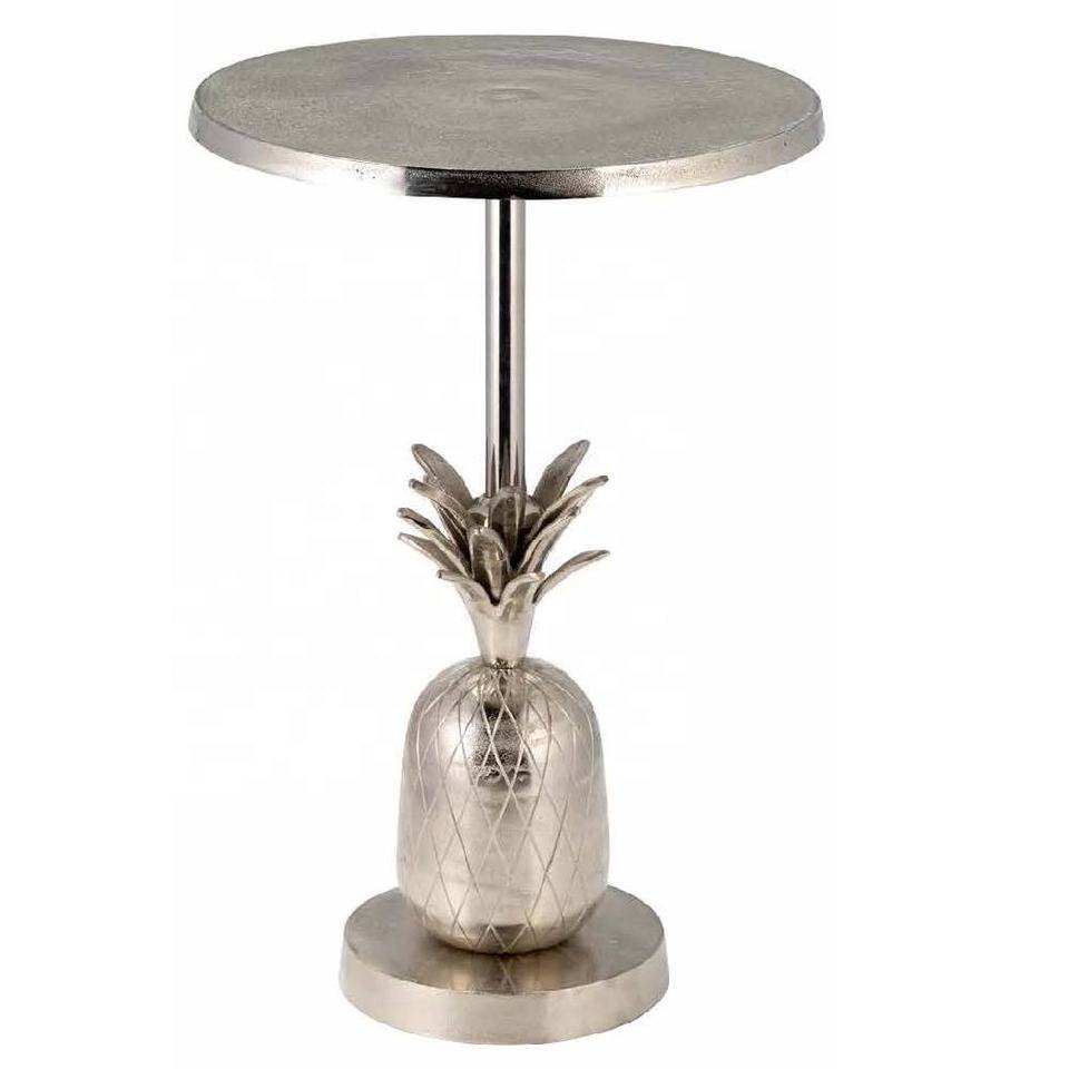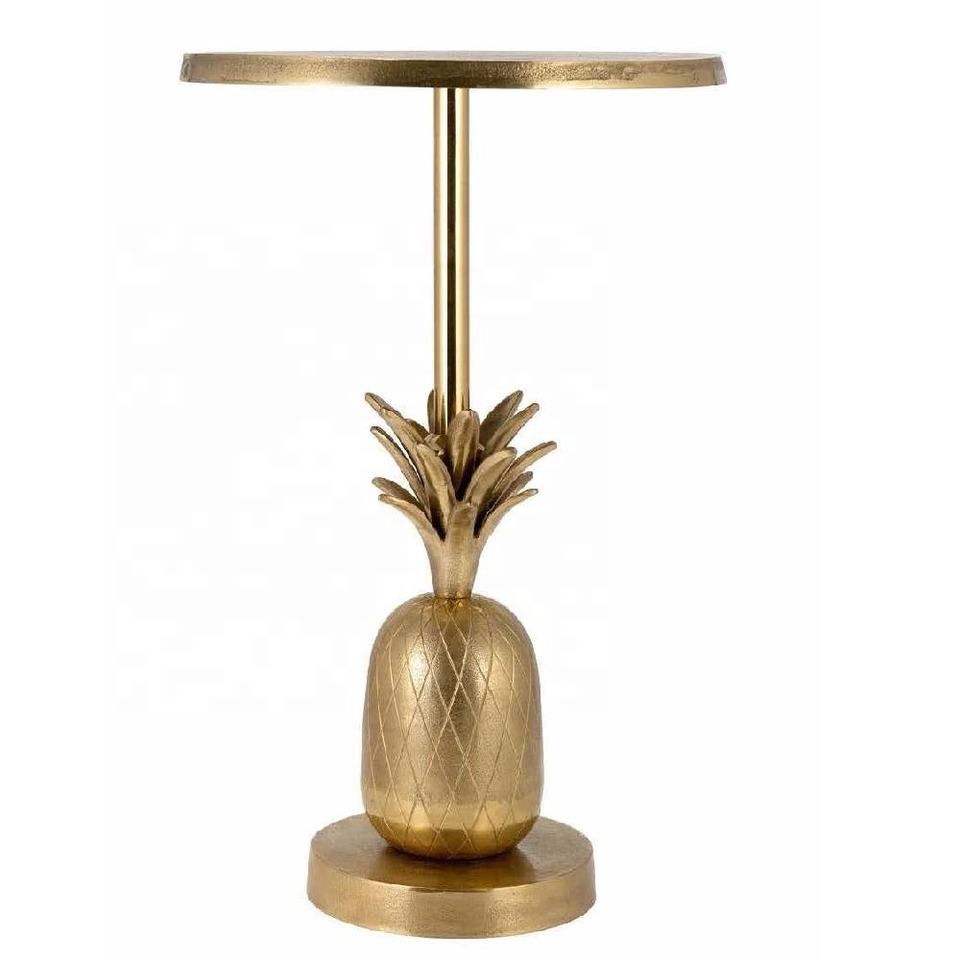 โต๊ะข้างตกแต่งทันสมัยฐานสับปะรดทำด้วยมือทำจากอลูมิเนียมคุณภาพสูงโต๊ะกาแฟออตโตมันสีทองสำหรับห้องนอน