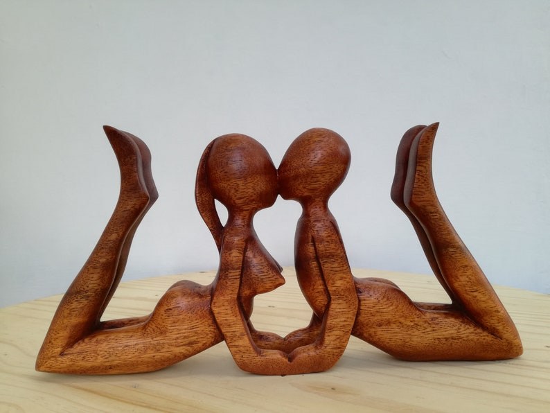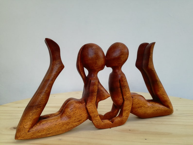 รูปปั้นคู่รักรูปหัวใจไม้สไตล์อาร์ตเดโค งานฝีมือคุณภาพสูง รูปปั้นคู่รักนามธรรมสุดโรแมนติก ของตกแต่งบ้าน ของขวัญ