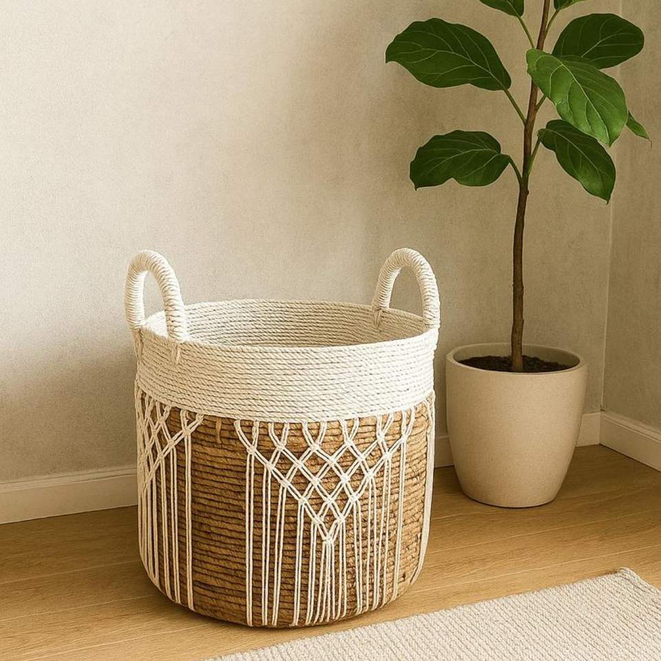 ตะกร้าเก็บกล้วยทำมือคุณภาพสูงพร้อมการตกแต่งที่ทันสมัยและเน้นการทำ macrame