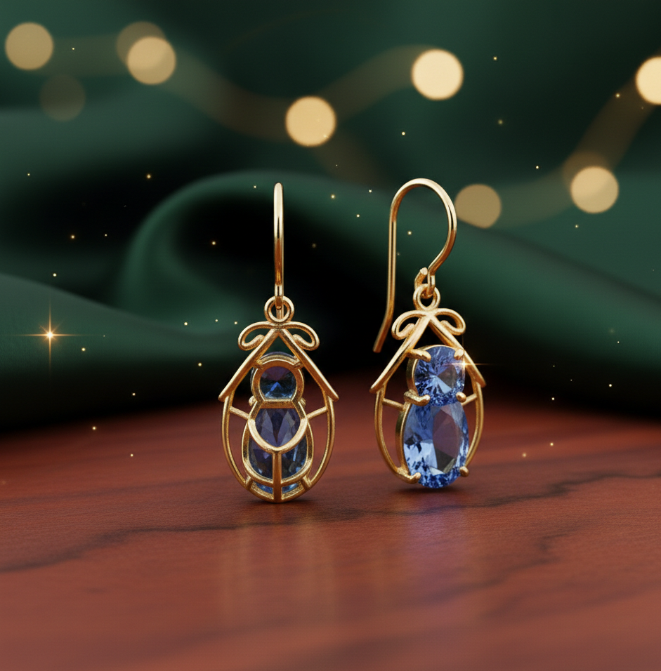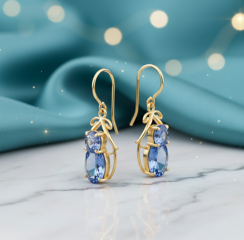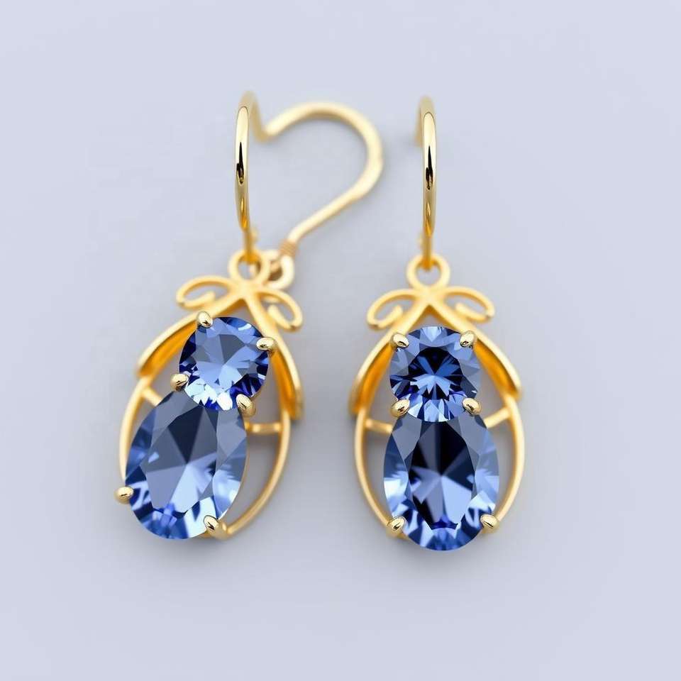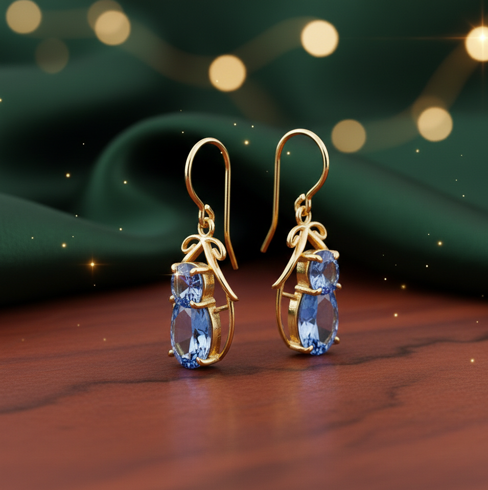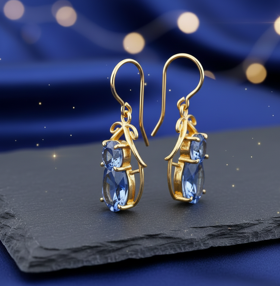 ต่างหูห้อยประดับด้วยหินไฮโดรสีน้ำเงินคุณภาพสูง งานแฮนด์เมด เงินแท้ 925 ชุบทอง 18K เครื่องประดับโดดเด่นสำหรับงานแต่งงาน