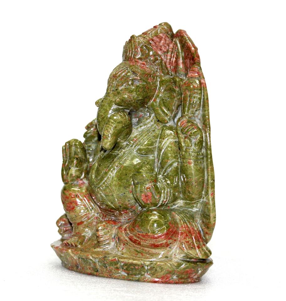 รูปปั้นพระพิฆเนศคุณภาพสูง งานฝีมือแกะสลักจากอัญมณีอูนาไคต์ธรรมชาติ สไตล์ทางศาสนา ขนาดสูง 6 นิ้ว รับสั่งทำตามแบบ