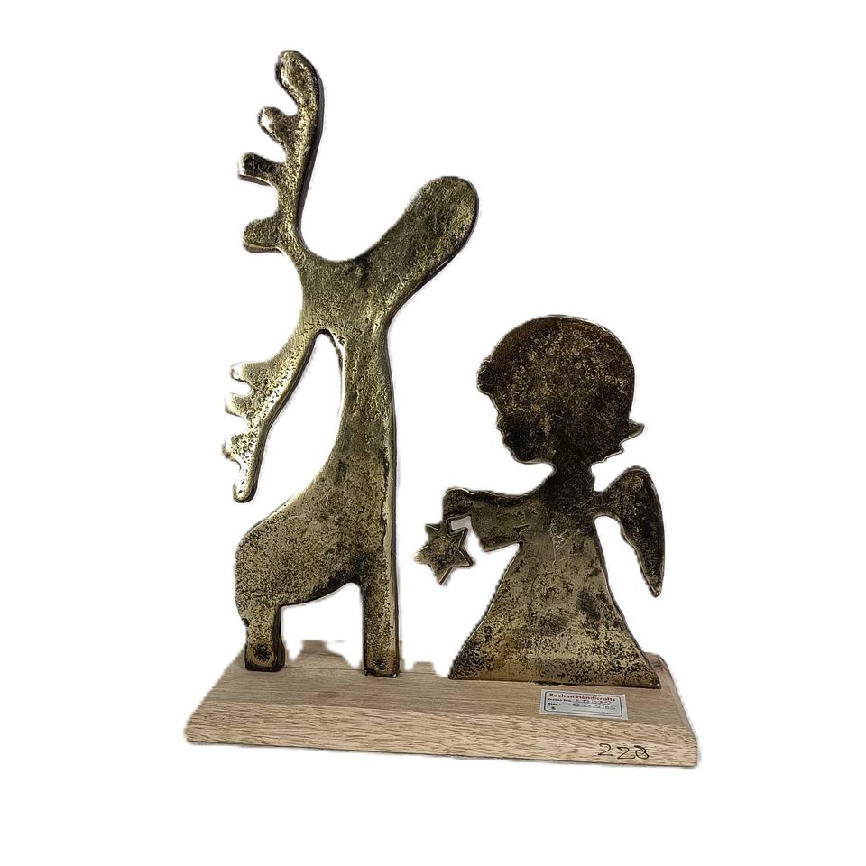 กวางเรนเดียร์อะลูมิเนียมทำมือคุณภาพสูงทำด้วยมือทำจากโลหะของขวัญคริสต์มาสงานตกแต่งฐานไม้แบบกำหนดเอง
