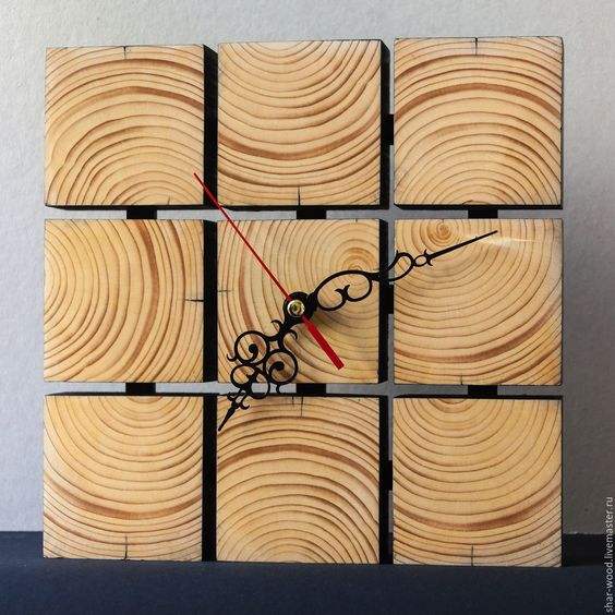 นาฬิกาแขวนผนังทำจากไม้ทำมือคุณภาพสูงนาฬิกาควอทซ์เคลื่อนไหวตัวเลขโรมันโลหะสี่เหลี่ยมอาร์ตเดคโคออกแบบสำหรับตกแต่งบ้านขายส่ง