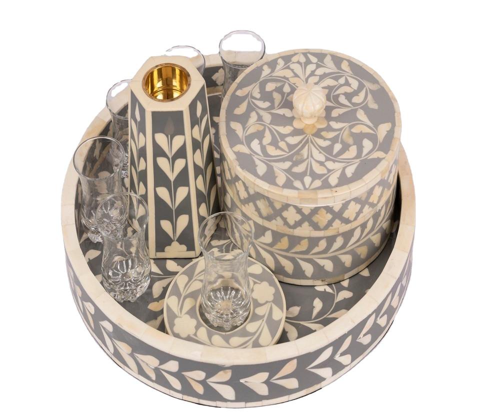 ชุดเครื่องหอมถูมือสีดำพร้อมกล่องถาดฝังมุกแม่ของขวัญเดือนรอมฎอนหรือเครื่องพ่นน้ำมันหอมระเหย
