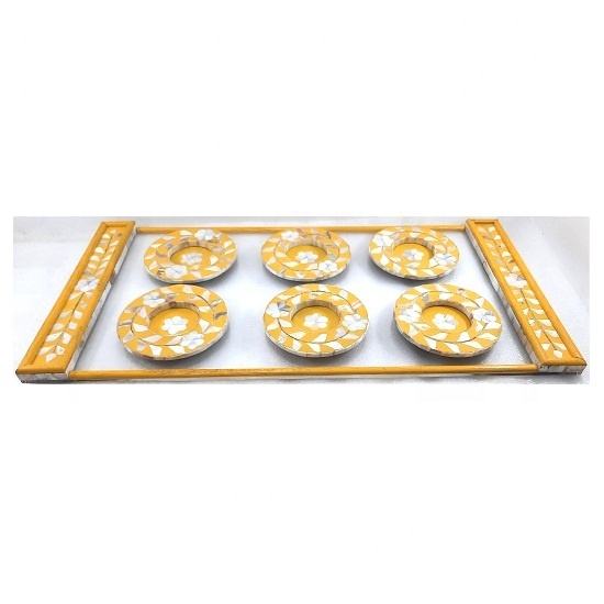 งานหัตถกรรมคุณภาพสูงจากอินเดียแม่ของไม้มุกและหินอ่อนถาดเสิร์ฟตกแต่งซับเปลือกเรซิน