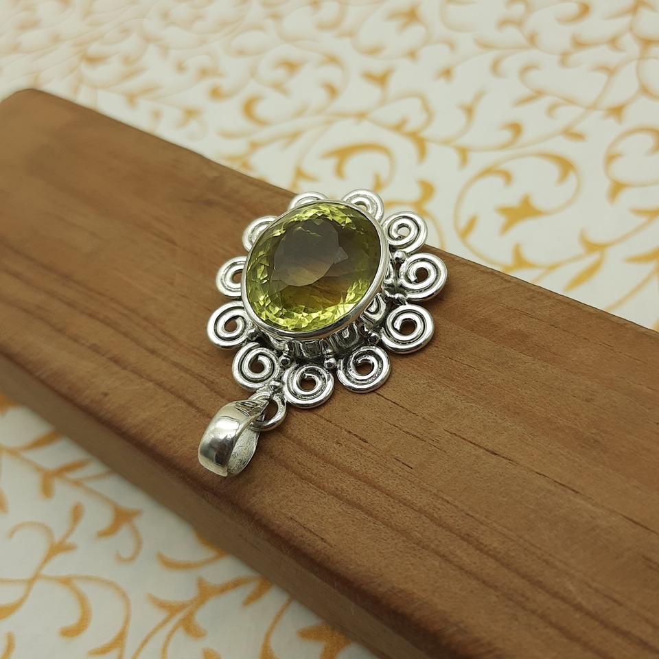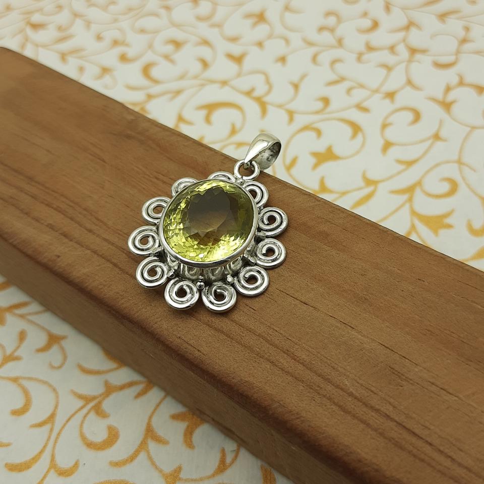 คุณภาพสูงทำด้วยมือ925อัญมณีเงินสเตอร์ลิงเครื่องประดับขายส่งจี้มะนาวบุษราคัมสำหรับผู้หญิง