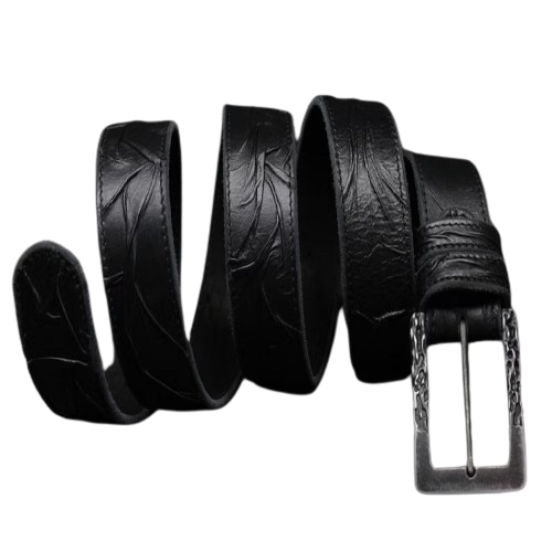 เข็มขัดหนังแท้แบบกอธิคของผู้ชายทำด้วยมือสไตล์ตะวันตกพร้อมโลหะสีดำ