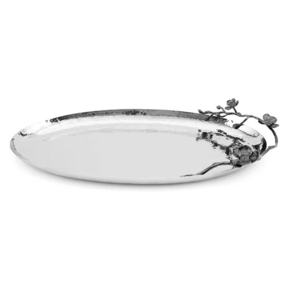 ถาดเสิร์ฟรูปวงรีลายกล้วยไม้สีดำคุณภาพสูง ทำด้วยมือ วัสดุสแตนเลสสตีลทันสมัย เหมาะสำหรับโรงแรมและงานแต่งงาน