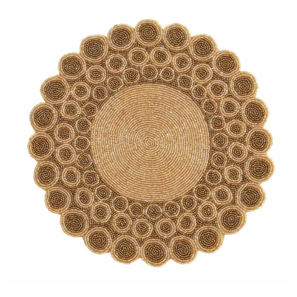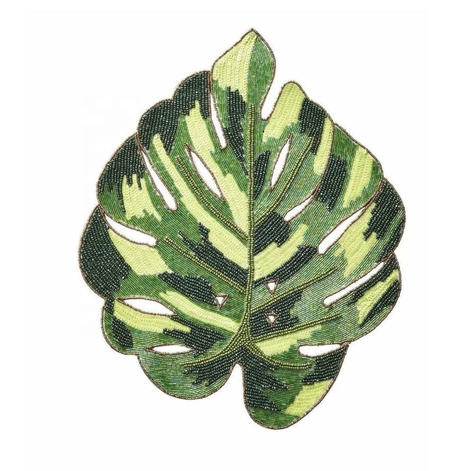 ผ้าปูโต๊ะลูกปัดแก้วทรงกลมสีฟ้าทำด้วยมือลายดอกไม้แผ่นรองจานสำหรับตกแต่งบ้านโต๊ะรับประทานอาหาร