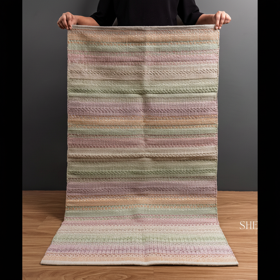 พรมฝ้ายทำมือคุณภาพสูง ลายเรนโบว์สไตล์ชาติพันธุ์ พิมพ์ลายดิจิทัล ทนทาน กันลื่น ใช้ได้ทั้งภายในและภายนอกบ้าน เหมาะสำหรับใช้ในบ้านและสำหรับการละหมาด