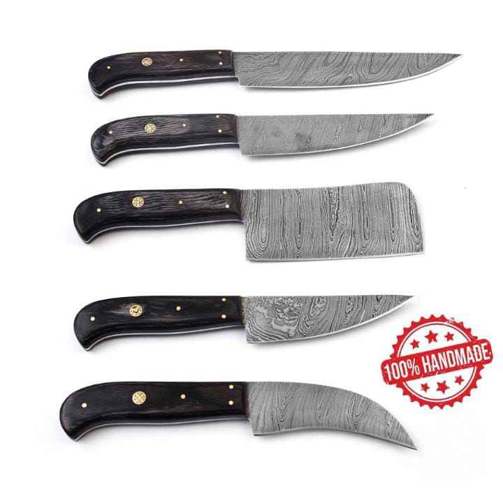 ชุดมีดครัวแบบพิเศษ5ชิ้นทำจากเหล็กดามัสกัส67ชั้น VG10งานตามสั่งทำด้วยมือด้ามไม้มะกอกคมทนทาน