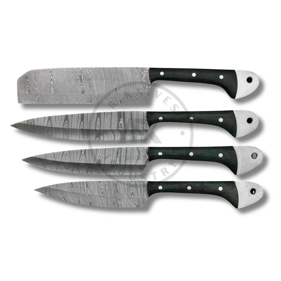 ชุดมีดทำครัวเหล็กดามัสกัสคุณภาพสูง งานแฮนด์เมด ด้ามไม้ 4 ชิ้น ใช้ได้ทั้งมือซ้ายและขวา เป็นมิตรกับสิ่งแวดล้อม สำหรับมืออาชีพ